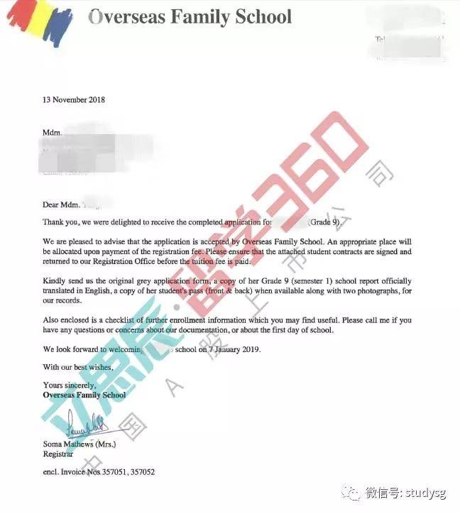 恭喜马同学成功申请新加坡海外家庭学校,无缝衔接!