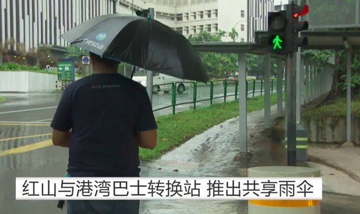 新捷运在红山和港湾巴士转换站,推出免费租伞服务。新捷运表示计划若成功,未来考虑在地铁站等地方推出。红山和港湾巴士转换站的乘客询问柜台前,设了这个雨伞架子。乘客需下载应用程序Nestia,扫描QR码,支付9.90押金后就能取伞。用完后只需把雨伞放回架上,就能领回押金,为下雨没带伞的公众带来便利。