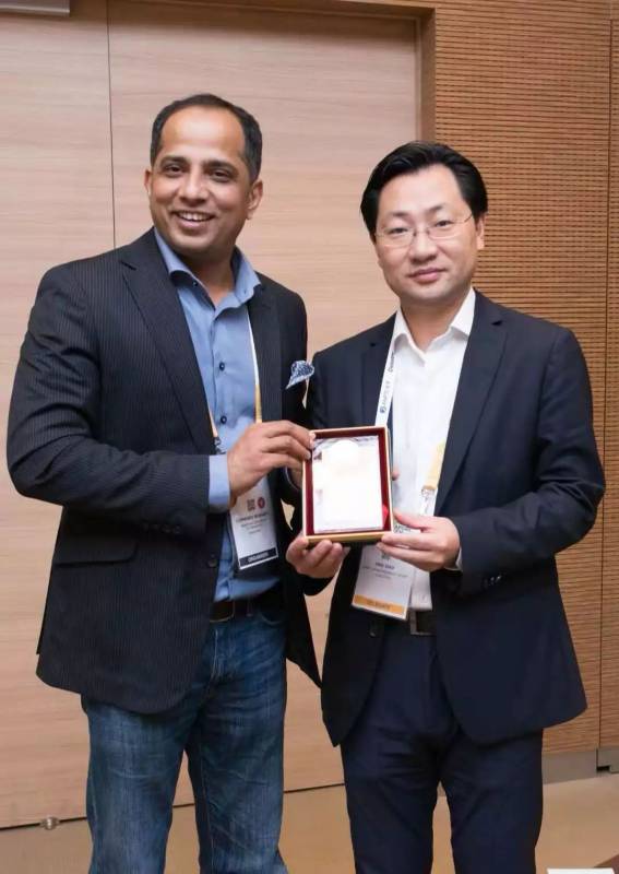 展会期间,中国太平保险集团副总经理肖星会见新加坡金融管理局首席金融科技官Sopnendu,并赠送了中国太平老保单复制纪念品。