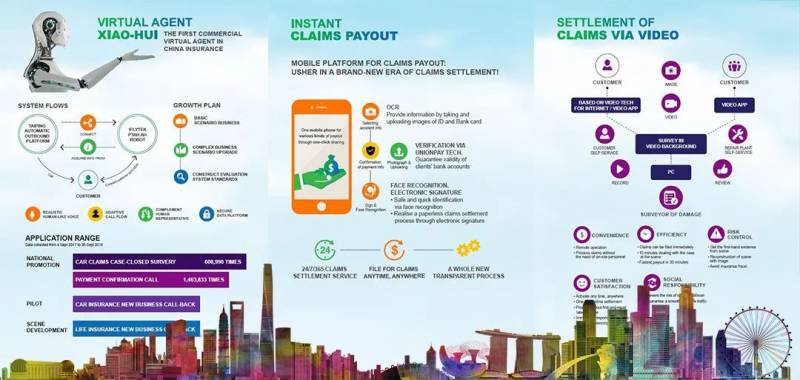 中国太平创新实验室在此次金融科技节重点展出三个将在新加坡落地的项目:虚拟坐席小慧、秒赔和车险视频查勘。