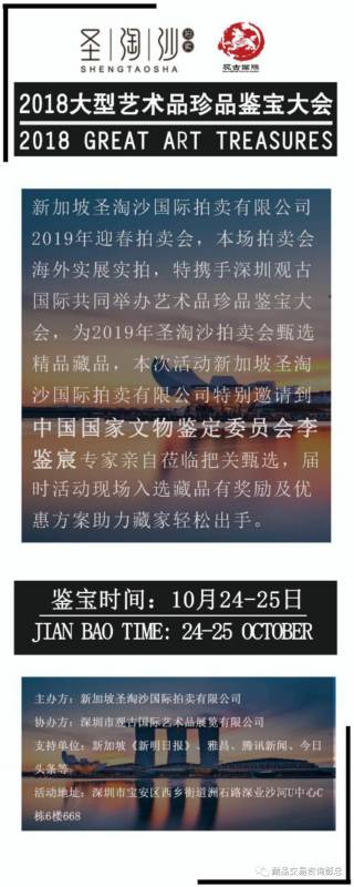 新加坡圣淘沙拍卖有限公司是一个得到新加坡政府批准审计和注册的大型综合性拍卖公司。公司植根于国际文化艺术收藏,与欧洲、日本、美国和其他国际知名艺术机构合作。