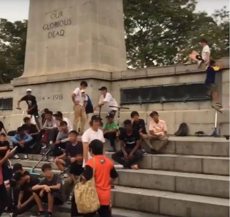 昨天,小圈儿刚说了一批顽童高空抛晾衣架的事儿,今天就又无意中发现,有网友爆料:一群少年在战争纪念碑前——肆意!