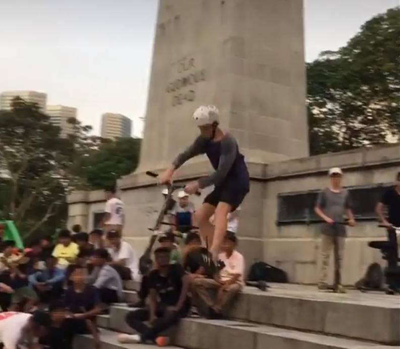 青年可能不知道当中的意义,只当作是一片供人嬉闹的空地。从上世纪80年代起,就有许多公众聚集在纪念碑玩滑板车、骑脚踏车,只要无造成破坏就不是问题。