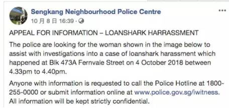 今年十月,盛港邻里警局发布通告,在全岛范围寻找一名涉嫌参与大耳窿骚扰活动的女子。