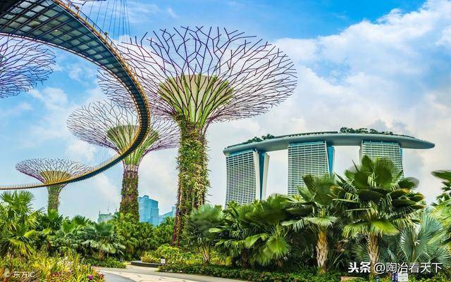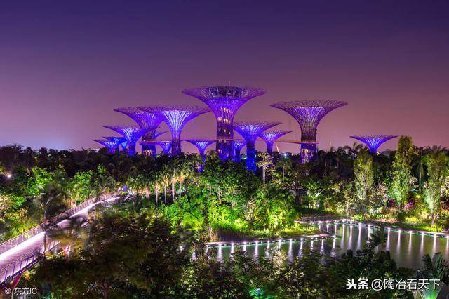 滨海湾花园由滨海南花园、滨海东花园和滨海中花园三个风格各异的水岸花园连接而成。花园占地101公顷,位于滨海湾亲水黄金位置。园内以各类植物为主,约25万颗珍稀植物。其中最著名的非仙气十足的云雾林莫属,晚上还有奇炫灯光秀,也是不可多得的网红拍照地。