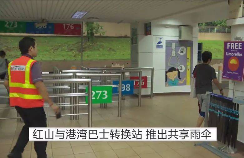 红山和港湾巴士转换站的乘客询问柜台前,设了这个雨伞架子。