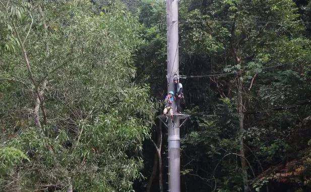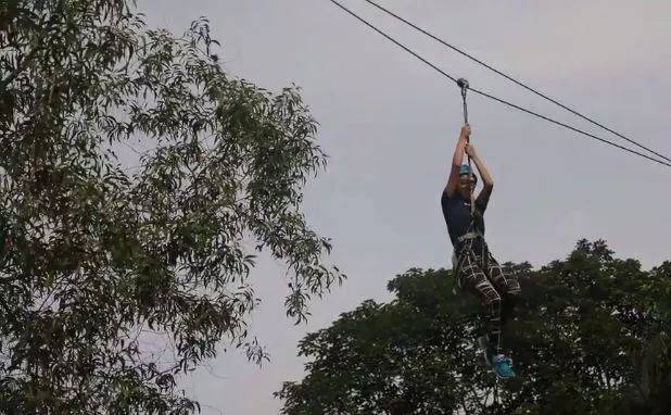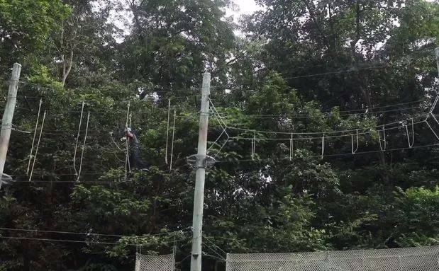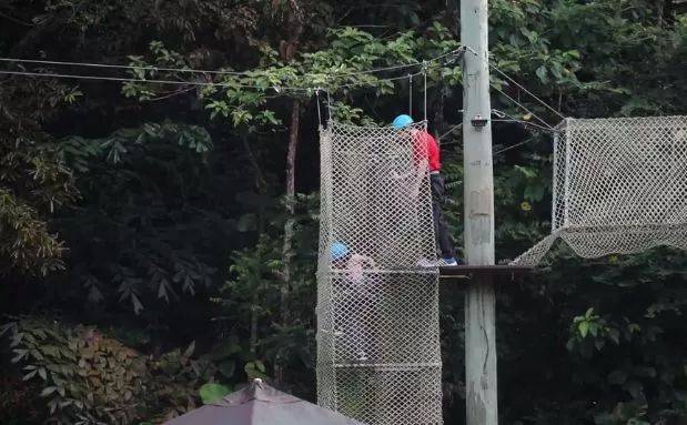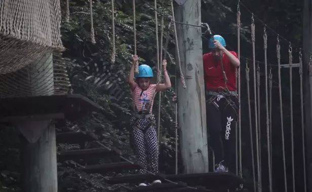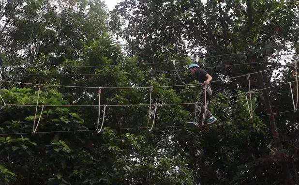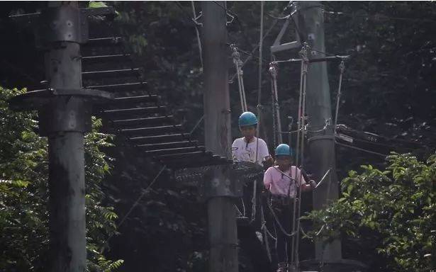 一起参与高空走粗杆、攀岩走壁