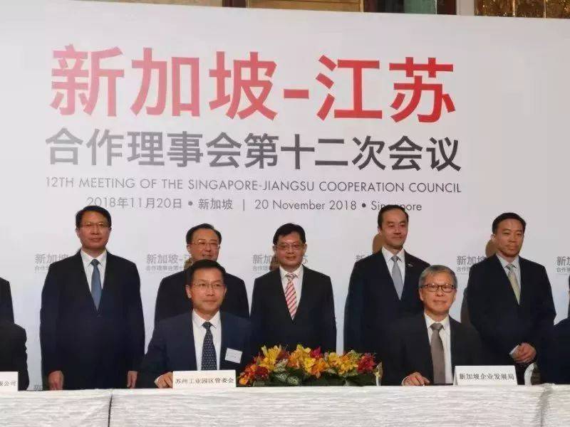 11月20日,新加坡-江苏合作理事会第十二次会议在新加坡成功召开。理事会双方主席江苏省省长吴政隆和新加坡财政部部长王瑞杰,双方副主席江苏省副省长郭元强和新加坡贸易与工业部高级政务部长许宝琨,与双方理事代表160多人共同出席会议。