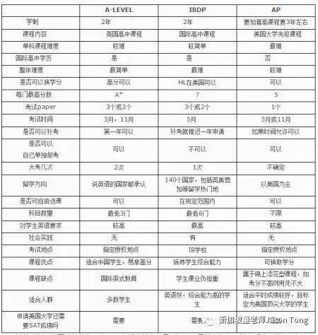 下面用表格形式对IB,A-Level,AP课程做提炼分析:
