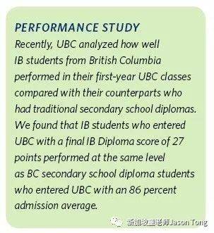 UBC曾经对IB大一新生和加拿大高中文凭大一新生做过对比分析(附图1);剑桥大学于2013年也对IB学生做过分析(附图2),一致认为IB学生的表现相对优于通过其他课程进入大学的表现。目前全球越来越多的大学接受IB学生,同时很多大学对IB学生实行学分奖励制度。