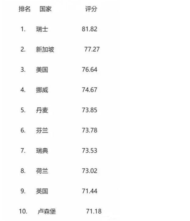 “人才竞争力排名前十的只有两个非欧洲国家:新加坡和美国。