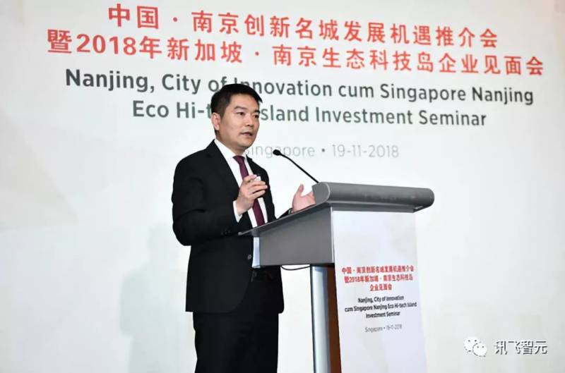 在一天前的中国·南京创新名城发展机遇推介会暨2018年新加坡·南京生态科技岛企业见面上,南京市常务副市长杨学鹏表示,南京将专注于人工智能等五大产业,建设“创新名城”,吸引国际高尖人才与企业落户,希望能与新加坡互惠互利,成为“亚太门户城市”。科大讯飞轮值总裁陈涛在会上发表了《人工智能时代的中国机会》的主题演讲,向与会嘉宾介绍,人工智能已经上升为中国的国家战略,习近平主席曾多提出发展人工智能产业,人工智能产业也被写进了《政府工作报告》。人工智能的核心价值,在于它是生产力效率工具和生产力革命工具。目前中国的人工智能技术高速发展,中国本身已拥有A.I.及新兴产业发展的广阔市场。科大讯飞在六大核心技术方面,取得了骄人的成绩。陈涛特别介绍了科大讯飞的两项成果:一、在2017年度,讯飞机器人以超过96%的人类考生的成绩,通过了国家临床执业医师考试;二、讯飞翻译机已经实现了全球33种语言的即时互译,获得了与会嘉宾的一致好评。而目前,讯飞正在参与建设的南京生态科技岛,正是加速A.I.产业发展的理想之所。