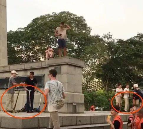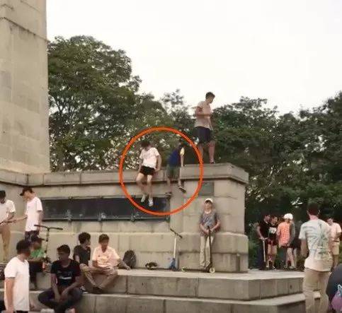 视频中拍到的是,一大群青少年聚集在纪念碑这里: