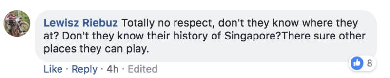 “完全是不懂尊重!他们不知道自己在什么地方吗?不知道新加坡的历史吗?肯定还有其他的地方可以玩吧!”