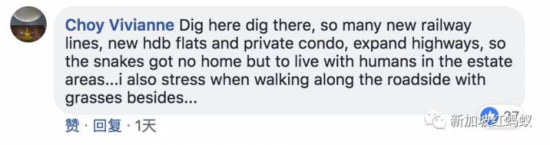 东挖西挖,这么多新的轨道线、新的政府组屋和私人公寓,还拓展高速公路,那些蛇没地方住只好和人类一起住在居民区......我走在长满草的路边也很有压力。