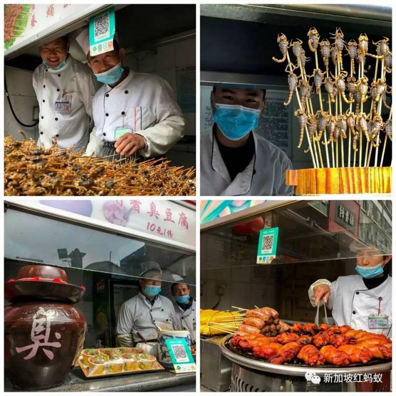 总理说:“走进了一条通往王府井小吃街的小路,这里售卖各式各样的特色街边小吃,包括炸蝎子!”