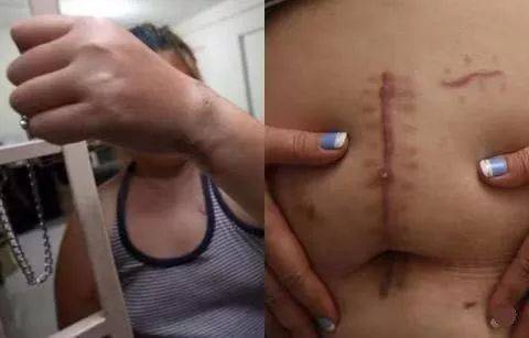 随后林女士被送到医院治疗,身上一共有20多道伤,缝了30多针,被要求住院9天。虽然事情已经间隔2个月之久,但身上的伤痕仍清晰可见。