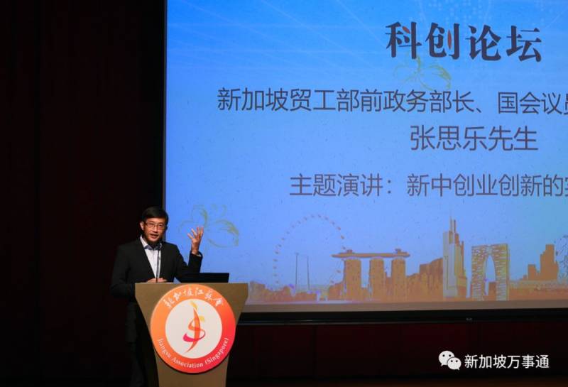 听完三位嘉宾的主题演讲,新苏合作理事会前新方副主席张思乐议员做主题演讲《新中创业创新的实践经验》。他分享了自己在离开政坛后的创业经验,并和大家讲述了他如何借助新加坡的优势将企业国际化,开拓中国等海外市场的宝贵经验。