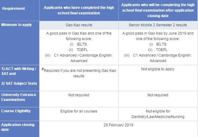 需要说明的是,此项为新加坡国立大学对中国本科申请学生的基本要求,医学院的申请需要直接登录国大官网进行查询:http://nusmedicine.nus.edu.sg