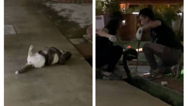 (新加坡23日讯)裕廊西一只流浪猫不幸被蟒蛇盯上,在组屋楼下被卷缠致死。附近居民目睹并将杀生过程拍下,视频上传网络引起网民热议。新加坡关爱动物研究协会(ACRES)之后已将蟒蛇捉走。