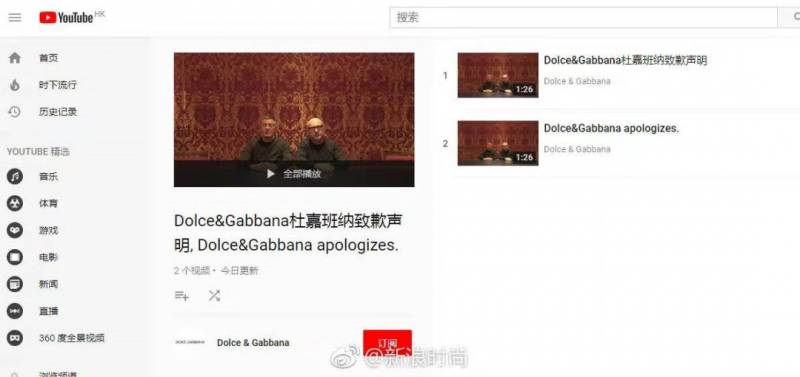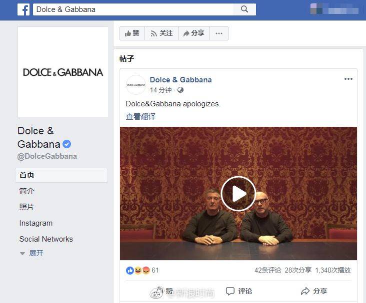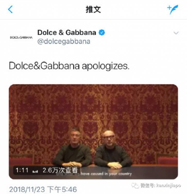 可能迫于网友压力,D&G在微博上发布道歉视频的3个小时后,又在推特、Youtube、instagram和脸书上都发布了中英文版致歉声明和视频!