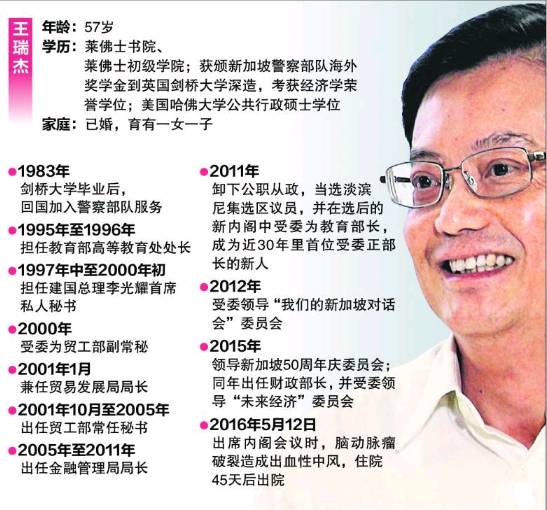 王瑞杰从政前担任过李光耀私人秘书,贸工部长常任秘书,金融管理局局长