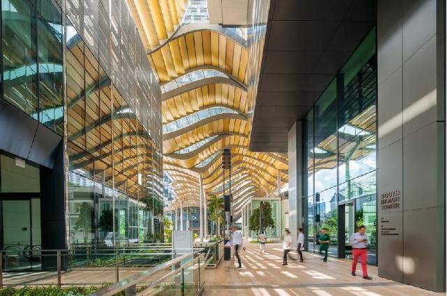 除了建筑造型独特,外观创新之外,其总体规划更巧妙地融合了新与旧的建筑,同时结合并容纳周边城市环境的设计。除了考虑到长期使用功能外,此设计也以着重环保,绿色科技,以及可持续性为主,例如,一排排为配合新加坡所处的热带气候而设计的波浪形大棚罩。这项大胆而创新的设计不但营造了舒适的地面层行人广场,也为此项目提供了充满活力的半户外空间以及独特的商业、休闲和社交体验。