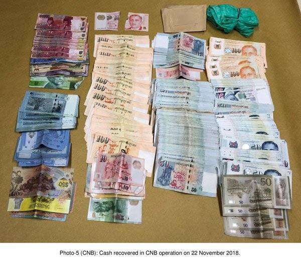 肃毒人员继续搜查单位,结果又从一个橱柜内搜出大量现金,里头包括一叠叠50元钞票,甚至还有印尼盾和令吉,被起获的现款大约有5万7500元。(17万2500令吉)4.26公斤的海洛因足以供2030名瘾君子用上一整个星期。