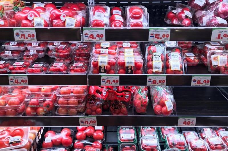 一进店就能看到蔬果区,君君超爱日本水果,看到这个区域兴奋到不得了, 单单番茄就有十几种。