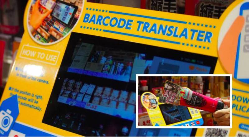 有些产品没有英文翻译,这里还配备了翻译机。消费者只要用它扫描商品上的条码,并选择翻译语言,商品的说明就会自动显示。