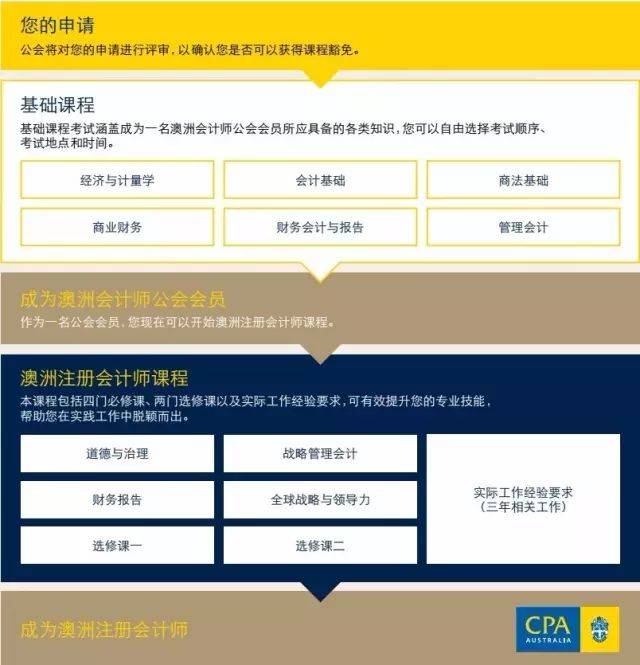 当您完成入会申请评审结果要求的所有基础课程考试后,即可申请成为澳洲会计师公会会员,并开始学习澳洲注册会计师课程。