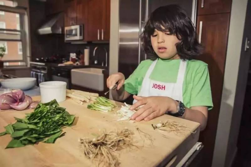 5岁时,Josh便穿着拖地的围裙,进入厨房开始尝试烹饪了。