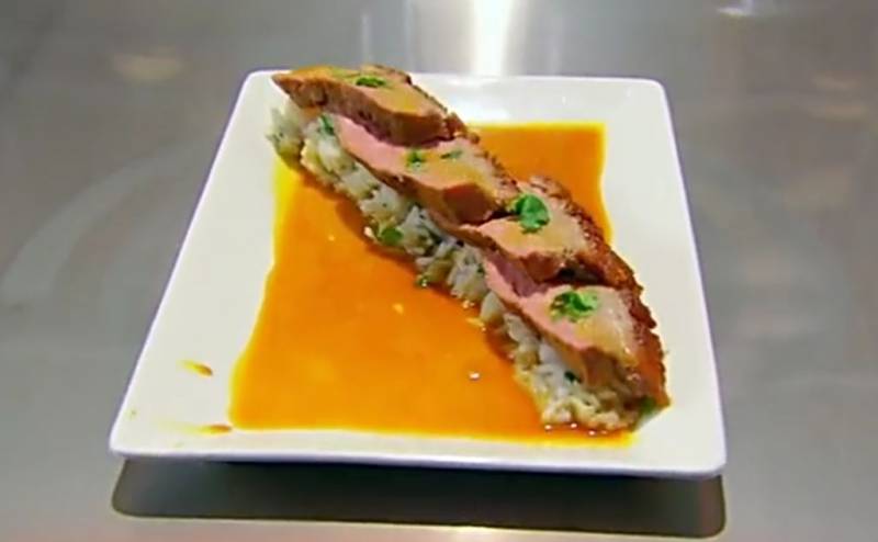 在这场淘汰赛中,Josh用橙汁和鸭肉做了一道咖喱味的香橙烤鸭,色香味俱全。评委评价其为,清新可口、技术到位、浑然天成。可能很多成年人都做不出这样的菜吧:)