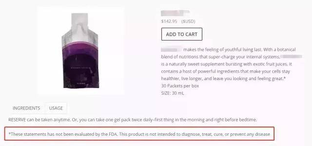 以上产品说明并没有被美国食品药品监督管理局评估,本产品不用于诊断、治疗和预防任何疾病。(下图红框处英文翻译)