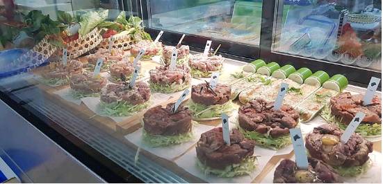 据说,这家摊位的蔬菜来自全发有机农场、鸡蛋来自联华行鹌鹑蛋农场、肉类来自卓泰山农场、新鲜鱼酱来自合利发有限公司,田鸡则来自裕廊农场。这些食材每日新鲜送到摊位,除非需要腌制的肉类及田鸡则需要提前一两天就开始准备。