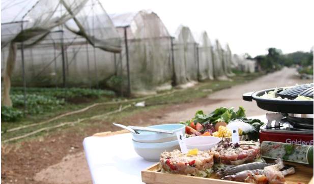 有机烧烤(Mookata)以两人份套餐出售,定价38元,包括有机蔬菜蓝、2份各130克的肉、2只虾、新鲜鱼酱及两只田鸡腿。