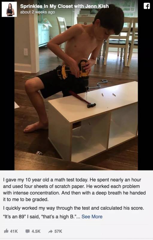 广告这位妈妈名叫kish,有一天她给了她10岁的儿子一张数学试卷让他来做。最后这个男孩得到了89分,换算下来是B+。