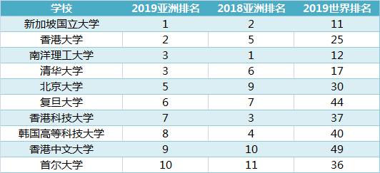 另附,QS 2019亚洲大学排名Top 10