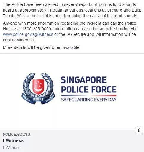 “警方接到了多次报警,表示听到了不同巨响声,时间大概在11:30am,地点在乌节路和武吉知马多处。我们正在就巨大的响声展开调查。”