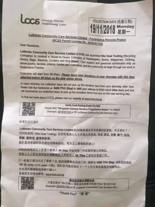 在新加坡,这些“弃之可惜”的东西是可以捐出来的。组屋里,每个月都会组织回收,或许这是避免大家“囤物症”的好方法。