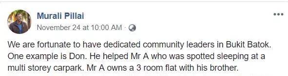 武吉巴督议员Murali深入了解情况后,昨天(11月26日)还专门po文,表扬了大家帮助这名男子的行为~