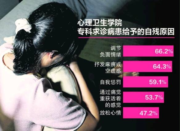 备受精神问题困扰的青少年与女性病患,更倾向以自残如割伤皮肤的方式来发泄与调节情绪。
