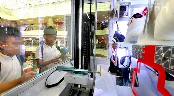 大部分游戏机都放置价值不菲的奖品,价值100多元至900多元,比如一些手机、名牌运动鞋以及潮牌衣物等,以吸引年轻人。