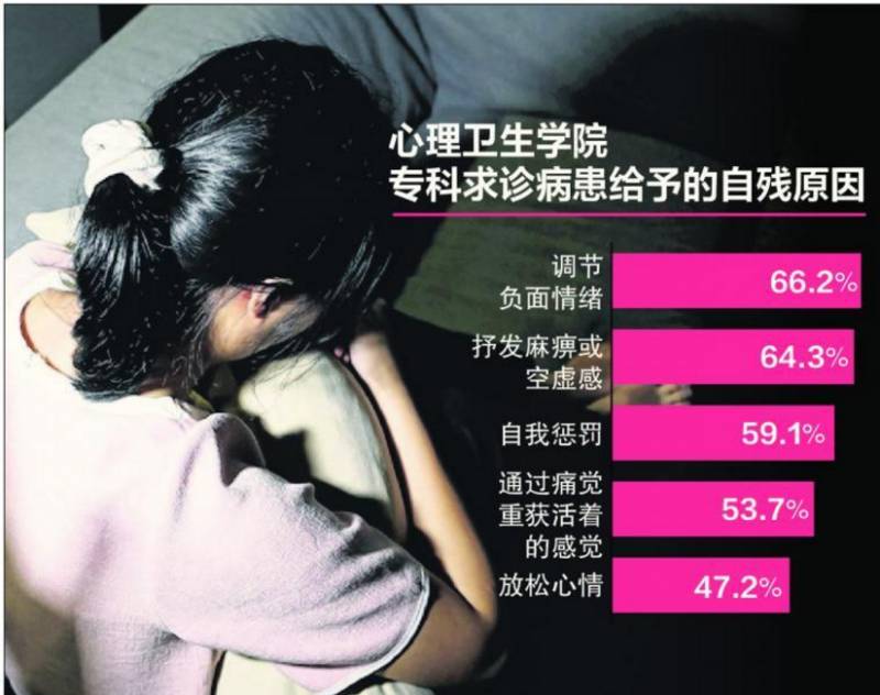 这些病患给予的自残原因包括调节负面情绪(66.2%)、