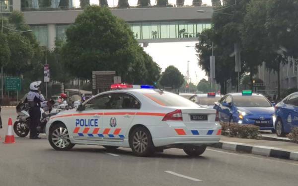滨海湾金沙酒店外发生车祸,警方封锁一条车道调查。