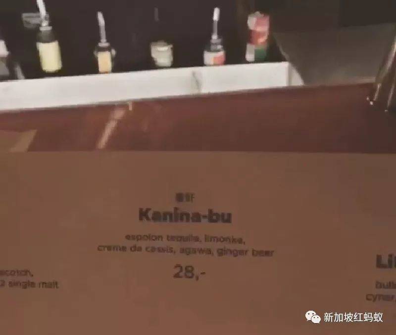 第二杯鸡尾酒叫:Kanina-bu(KNNB)菜单上的中文字写着:著奸
