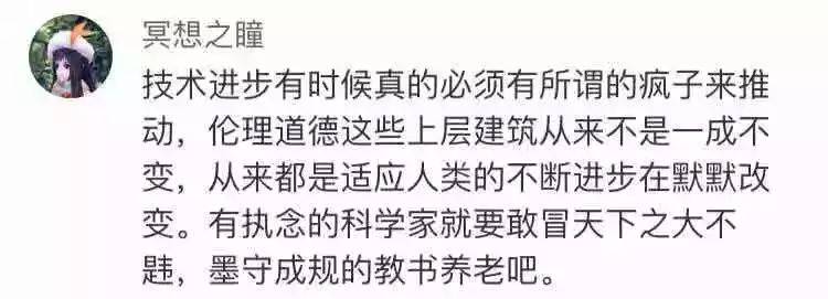 比如,改变还未出生的孩子的基因,无异于把她当作了小白鼠做实验。基因涉及到的问题太久远,孩子要长大要结婚生子,这个被改变的基因流入人类基因库会产生怎样的后果?甚至有人将其比喻成“潘多拉的魔盒被打开了”……