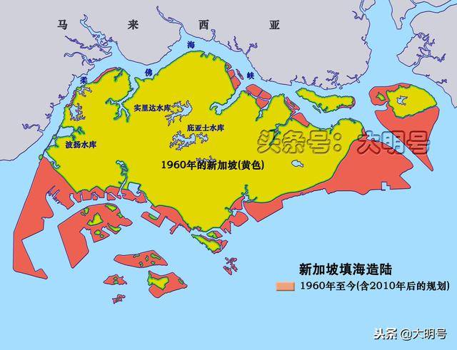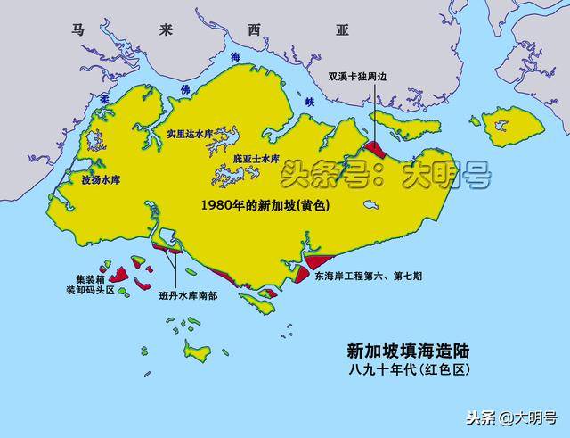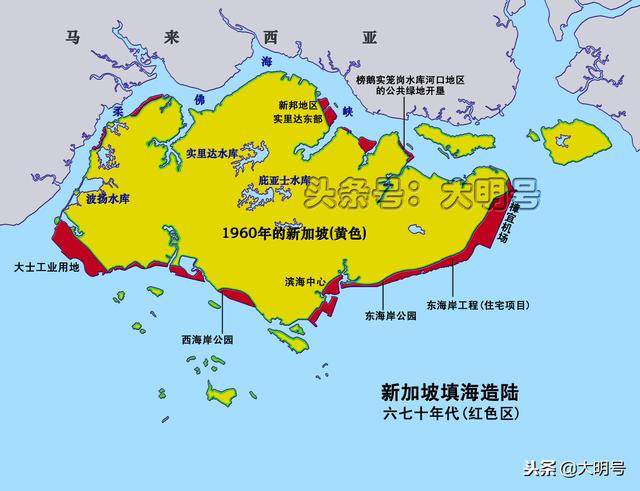 从1965年8月初脱离马来西亚联邦开始,面积小,人口多和资源匮乏的新加坡为了解决失业率高和通货膨胀严重的困难局面,制定了适应外部需求为主的出口主导型经济发展战略,这使得新加坡的国民生产总值持续稳定增长。而高速增长的经济在解决失业问题的同时,亦推动了填海进程的快速发展,据统计,从1960年至1980年间,新加坡填海面积达到43.47平方公里(大体相当于1.3个中国澳门的陆地面积)。因为受到外向型经济发展方向的影响,六七十年代的新加坡将填海所得土地主要用在了与进出口贸易有关的项目中,比如新加坡在此时期就建成了当时亚洲最大的货柜码头和在全球航空运输中起到枢纽作用的樟宜机场。