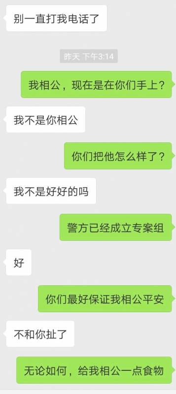 前天下午3:34,绑匪联系了顾小姐。但是从与绑匪的微信聊天记录中看,绑匪和这对情侣似乎认识,难道是熟人作案?