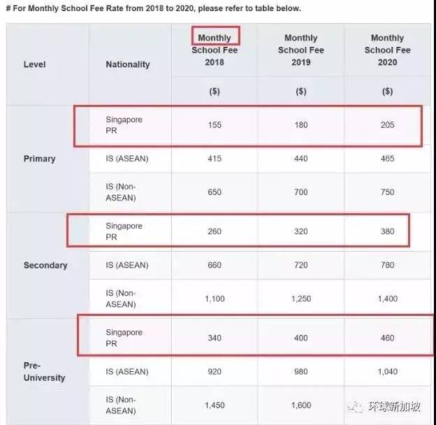 新加坡公民享受免费义务教育,而新加坡PR缴纳的学费仅为国际生的1/3甚至1/4,有图有真相: